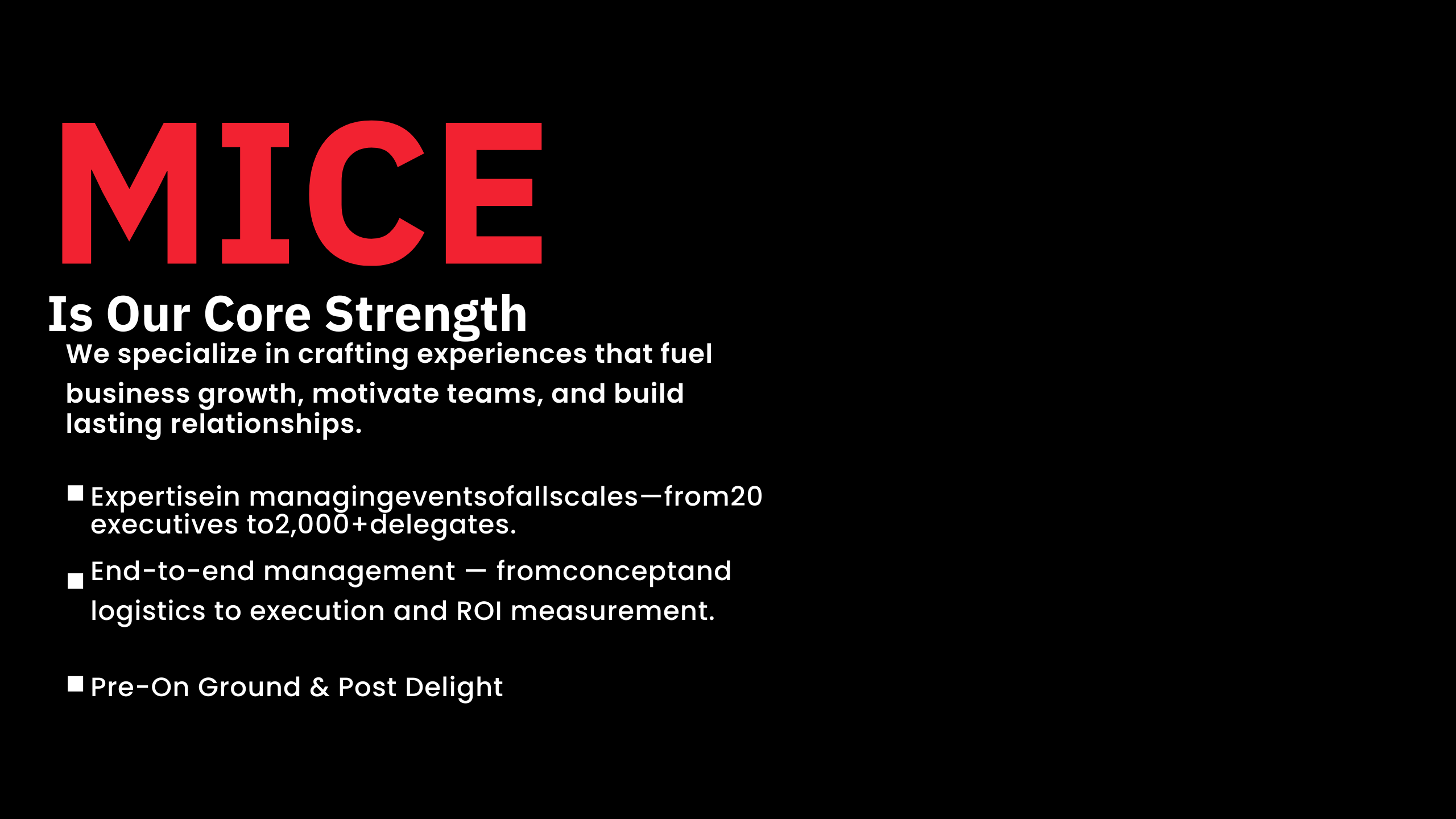 At Matherson’s MICE, we don’t just organize events; we create lasting experiences. Let us elevate your corporate gatherings with meticulous planning and global reach. Contact us to turn your vision into reality.